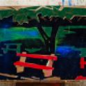 Legújabb képein hűlő helyükön festi meg a lélek ott felejtett nyomait Ádám Zoltán: kerti padokon hagyott feszültségeket, szerelmi tüzek parazsát. Az olykor műanyag díszítőelemeket kristályként a képre applikáló, máskor papírragasztásos megoldással dolgozó Ádám a szegény művészetre oly jellemzően néha talmi deszkákra készíti képeit.