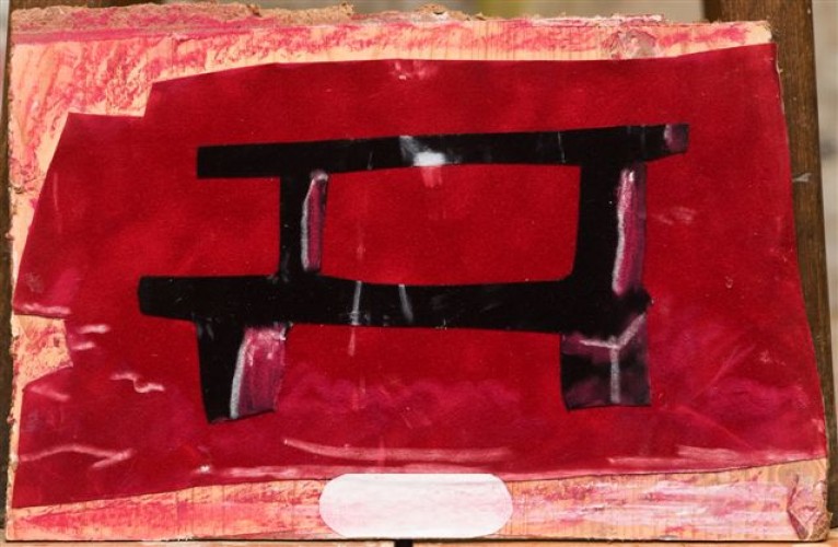 Megint máskor bársonyos felületekre fest, kihasználva ennek az anyagnak a különleges fényelnyelő és -visszaverő hatását. Így azon a festményén is, melyen haldokló apjától búcsúzik: a képen egy vörösen izzó lábnyom látható alulnézetből.