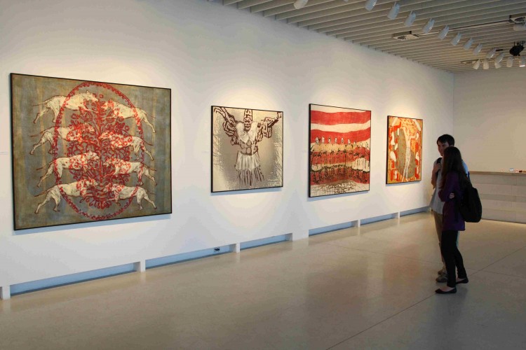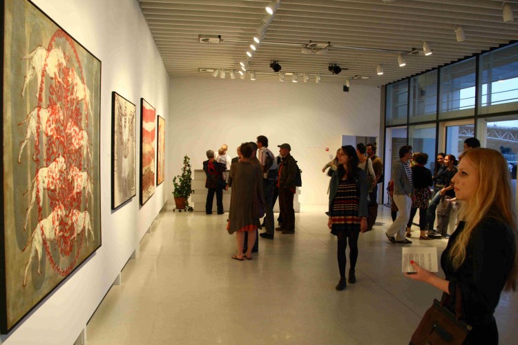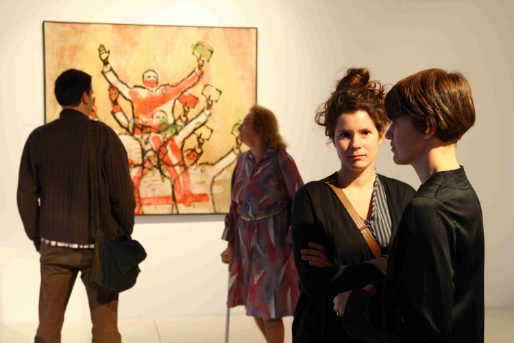 Mindezt persze nem csak az a néző kérdezi, aki egy kicsit el van már szokva a reprezentatív méretű, ikonszerű igényekkel fellépő, klasszikus technikákkal operáló, előtér-háttér-figura-kolorit viszonylatokban kommunikáló, mágikus realista festményektől, tehát aki a kortárs képzőművészet kapcsán nem mondjuk Peter Doigra gondol első lendületében (ami persze könnyen lehet, hogy fatális hiba), szóval ezeket a nagyon nyers, nesze-a-pofádba kérdéseket nem csak a megrökönyödött néző fogalmazza meg, hanem ezek a kérdések készen várják e festmények terében, épp úgy, mint rács mögött a párducok, mint falusi cirkuszban a rémisztő bohócok, és mint a közúti ellenőrök az út végén a kanyarban, vagy mint az asszonykórus a cirkusszal átellenes községháza előtt.