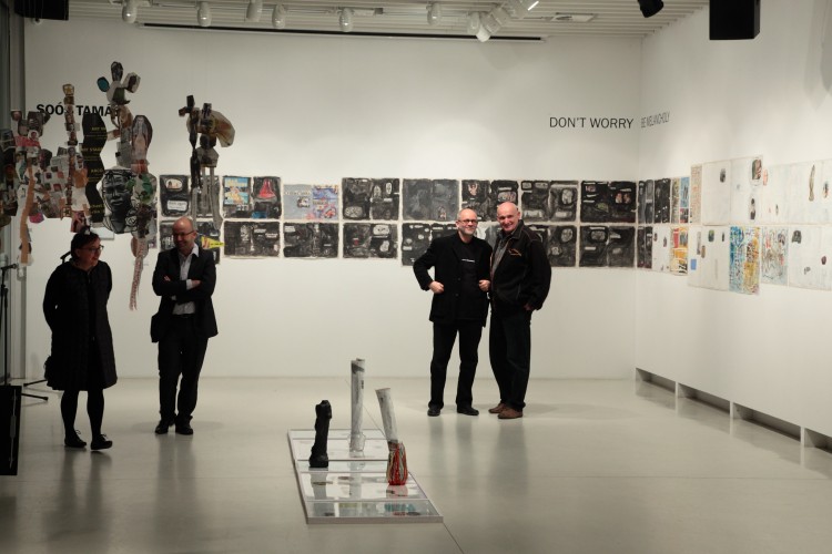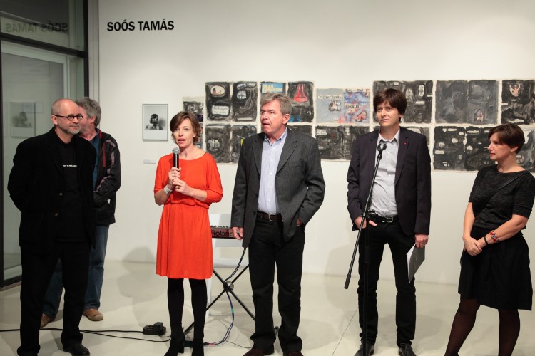 Mert mi más is lehetne a művészet szerepe, különösen mai világunkban, ahol a jó szándékú kezdeményezés, a naiv gondolat, a bárgyú szeretet, egyszóval mindaz, ami a művészet eredendő és elvitathatatlan tulajdonsága, valamint a benne rejlő szellemi érték és az utazásra hívó gondolat, nos hogy ezeket eltiporja oly sok minden. S hogy mi minden, azt Soós Tamás különös tacepaoján, faliújság-szerű frízén követhetjük nyomon, a kollázsok, kitakarások, kiemelések, átírások, átértelmezések, átfestések, a saját nyelv megteremtésének igényét, lehetőségét és bizonyítékát felvonultató tárlatán.