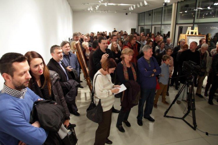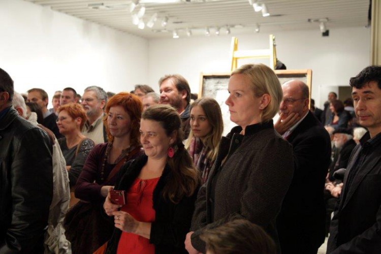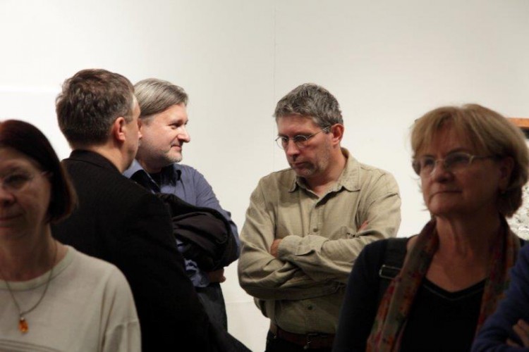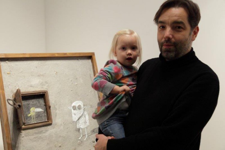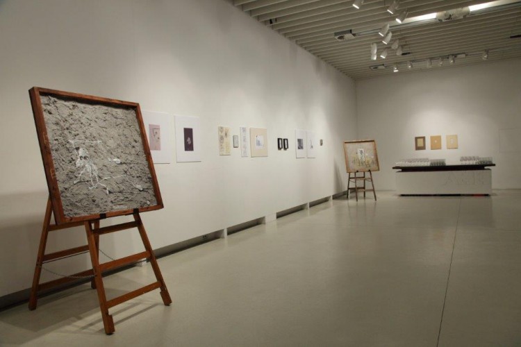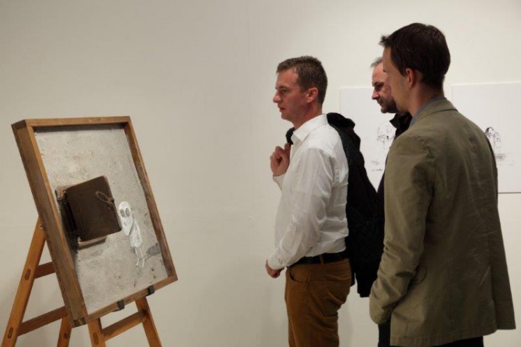 A kiállításon a natúr betonképek és a grafikák mellett láthatjuk még néhány könyvillusztrációját is.