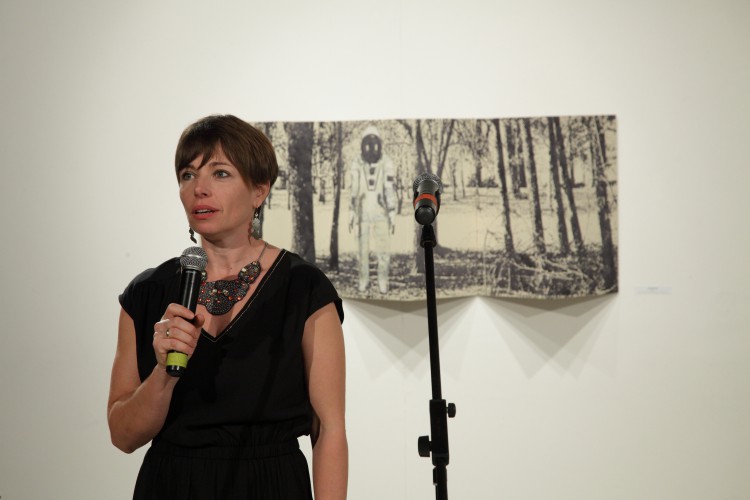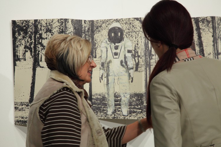 Szerencsére a kiállítás záróköveként itt van ez a kis paraván az erdővel és a furcsa, suta űrhajóssal. Igaz, hogy nem tudhatjuk, milyen szándékkal közelít, mindenesetre a különös kis figura kulturális asszociációs mezeje a maga művészettörténeti beágyazottságával egyfajta kiegyensúlyozottság, nyugalom reményével kecsegtet. Nem tudhatjuk, merre kereshetjük mindezt. Viszont reméljük, hogy létezik. Valahol.