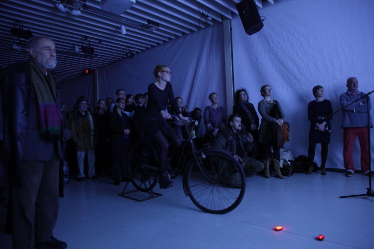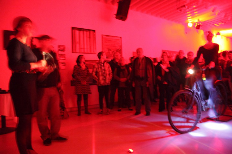 A megnyitó eseményről természetesen nem maradhat el Minyó sajátos műfaja, a fénykerékpár-akció sem, melynek ezúttal a művész lánya Szert Lili lesz a mozgatója.