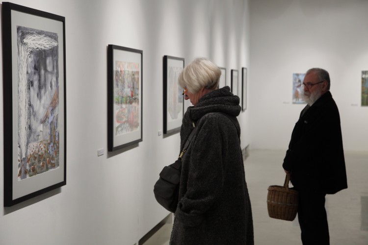 A mostani kiállítás darabjai papír és vászon alapú síkképekből állnak, olyan vizuális lírákból, amik zömét már az idei évben készített művek adják.