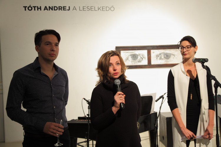 „Megfigyelni, meglesni valamit vagy valakit, nyíltan vagy titkoltan, ahogy a férj figyeli meg a nejét, a fiúgyermek az anyját, a diák a tanárát, a tanár a diákját. Ahogy mindig is vonzóan hívogató tud lenni egy félig leengedett redőny, egy félig behúzott függöny, egy opálosan, gyéren megvilágított jelenet, személyes történet a szemközti ház második emeletén, a lépcsőházban felfelé igyekvő lábak látványa, melyekhez nem tartozik test, arc, csak egy elmosódott mozdulatsor, ugyanakkor annál élesebb ütemes kopogás. Mindez végigkísér minket, megtölti mindennapjainkat, elmosódva, összekuszálódva, vagy épp tűélesen kirajzolódva. Krakkóban, Rómában, a rajziskolában (ahol először volt szabad tudományosan megfigyelni az emberi test részleteit) vagy a pesti gangokon. A kiállításon beleleshetünk az életem korábbi leselkedéseibe is, így láthatunk egy akt rajzokkal betapétázott falat, Krakkóban vagy Rómában készült képeket. A kiállítási anyag nagyobbik hányadát azonban jelenlegi műtermem s az onnan induló kitekintéseim adják.” (Tóth Andrej)