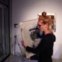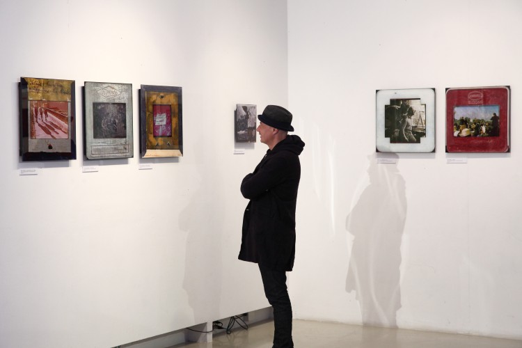A kiállításon csak friss színes fotóalapú munkák lesznek láthatók. Minyó mélységi montázst építve arany- és ezüstmetállal kézimunkázza a plexi fotókat.
