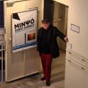 A Komorné Kézimunka Műhelye című képes mesekönyvet Minyó írja. Minden képhez tartozik egy érdekes történet, és egy talán még érdekesebb, ami arról szól, miért éppen most jut eszünkbe újra ez a réges rég beégett expozíció. Miért fontos most a kis aranyszegélyes tábla (megjegyzem Minyó műveit is sokszor arany szegélyezi), hogy jön elő a nagyszülői lépcsőház, ahol a gyermek Minyó kettesével szedte a lépcsőket. Ez a kép is sokunknak beéghet most, a gyerek Minyó, aki lohol föl a lépcsőházban, egy Régiposta utcai ház belsejének a szaga. Ott vagyunk mindannyian. Tudjuk, mi ez.