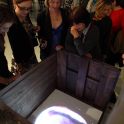 Látjuk még a periférián a színes grafikonokat, kitakarják őket a képek, szinte nem is látszanak. Olyan a fal így, mint egy kórházi lázlap, több színes, szabálytalan EKG-csík. Ahol a képek alatt eltűnnek a vonalak, ott a hiány van, nincs élet. Illetve, ha másként nézzük, épp ott látunk bele az életbe, ahol a vonal megszűnik, ott tárul ki egy metaforányi ablak, amin keresztül beleshetünk a dobozba. Nem is doboz teteje ez, hanem egy csapóajtó, amely egy pillanatra felnyílik, és egy rövid időre láthatóvá válnak a fogaskerekek, a hajógépezet, aztán visszacsukódik minden, az életvonal folytatódik.