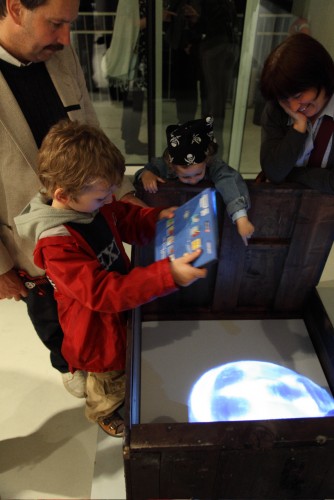 A nagy bábu sem néz ide, a gyorsan hömpölygő Dunát látja, bámul bele a vízbe. A kis önportré a táblát nézi a saját felirattal, a menetekellel, nem látja a képeket, tudja őket kívülről. Ezek a bábuk egyszerre érzékenyek és érzéketlenek – ők így hárman, mert ott van még a fekete puttonyos alak, Ottfried is – mindent tudnak és éreznek, de nem sírnak, nem mozdulnak, legfeljebb elmúlnak vagy eltűnnek.