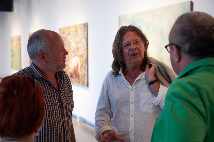 Rendhagyó módon a mai tárlatot, Szigeti Tamás Elemek című kiállítását, mely a 14. egyéni kiállítás, melyet Tamásnak rendezünk, én fogom megnyitni, és a megnyitó folyamán több helyen fogok idézni Tóth Krisztina első verseskötetéből, A beszélgetés fonala címűből. Teszem pedig ezt azért, mivel tudom, hogy Tamás alkotói szakaszait mindig kísérik szépirodalmi hatások, és amikor a mai kiállításra készülvén feltettem neki a kérdést, mit olvas mostanság, azt válaszolta, hogy Tóth Krisztinát. Ezt a kötetet, az elsőt viszont még nem ismerte, úgyhogy remélem, ezzel az idézett szövegekkel, talán egy kicsit őt is sikerül meglepnem.
